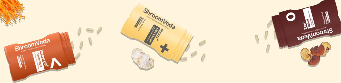 ShroomVeda is a modern wellness brand rooted in ancient Ayurvedic principles and modern functional science. We create clean, natural, mushroom-based supplements enhanced with adaptogenic herbs to help you elevate focus, energy, and resilience — the way nature intended. Each of our formulas is thoughtfully designed to support your mind, body, and lifestyle holistically